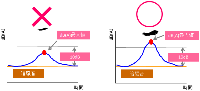 まず、測定の対象となる航空機は、暗騒音値よりも10dB大きな値となった航空機です。