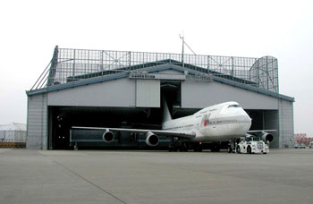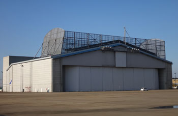 整備を完了した航空機が、安全運行のためエンジン試運転を行うことは大変重要です。こうしたエンジン試運転を行う際の騒音を低減するため、当社では1999年度に格納庫型消音施設「NRH(ノイズリダクションハンガー)」を航空会社と共同で設置しました。